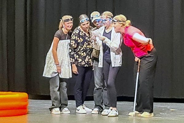 Im Jahr 2024 feierte das Augustinum Mölln sein 50-jähriges Jubiläum. Im Rahmen einer Jubiläumswoche, die einem Veranstaltungsmarathon glich, stand am 4. September ein „Tag der offenen Tür“ auf dem Programm. Den ganzen Tag über kamen Gäste, um das Haus zu besichtigen, und die Generationen mischten sich – besonders durch Besuche der benachbarten Schulen – aufs Schönste. Vormittags waren alle Schüler*innen der 10. Klasse des Gymnasiums der Stadt zu Gast und verstärkten und verjüngten die von Bewohner*innen durchgeführten Veranstaltungen wie den Kurs „Englische Konversation“ oder das Boccia auf unserer Bocciabahn. Abgeschlossen wurde der Tag mit „Der Schatz im Augustinum“, einem Theaterstück, das die Theatergruppe der Gemeinschaftsschule Mölln dem Augustinum zum Jubiläum schenkte und zwei Mal am Nachmittag aufführte. Der Inhalt und die Inszenierung kamen von den Schüler*innen. Sie spielten das Stück mit viel Können, Witz und so lebensnah – man meinte, sie hätten schon häufig im Haus „Mäuschen“ gespielt.
