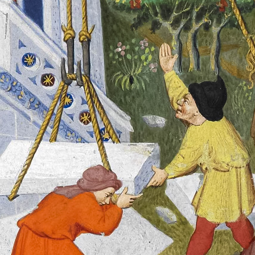 Der Turmbau zu Babel ist nicht nur eine anschauliche Parabel für menschlichen Hochmut und das Streben danach Gott gleichzukommen, sie ist auch eine wunderbare Vorlage für die Künstler des Mittelalters und der frühen Neuzeit geworden. Sie hat daran vor allem das Bauhandwerk interessiert. Neben der vielleicht berühmtesten Darstellung von Pieter Breughel d. Ä. sind es besonders die Buchmaler gewesen, die anschaulich vor Augen führen, wie eine solche Großbaustelle im beginnenden 16. Jahrhundert ausgesehen haben könnte. Auch der Meister des Bedford-Stundenbuchs zeigt detailgetreu, wie Steine ausgemessen, behauen und mittels Seilwinden und Hebewerken in die oberen Stockwerke des Turmes gezogen werden. Doch so beeindruckend die Kunstfertigkeit der Baumeister auf den ersten Blick auch erscheint – beim Blick auf die Spitze des Turms erkennt man, dass hier auf einmal gar nichts mehr seinen geordneten Gang nimmt: Steine fallen herab, und sogar ein Arbeiter stürzt nach unten, andere sind in Streit geraten. Das alles verweist bereits auf das unrühmliche Ende dieses Versuchs der Menschen, es Gott gleich zu tun und mit den eigenen Fertigkeiten den Himmel zu berühren. Wie schon in früheren Verfehlungsgeschichten der Genesis, der Vertreibung aus dem Paradies, dem Brudermord von Kain an Abel und der Sintflut, bleibt auch in der Geschichte des Turmbaus zu Babel die Konsequenz nicht aus:
