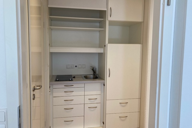 Eine Küchenzeile im Flur einer Wohnung der Seniorenresidenz Mölln