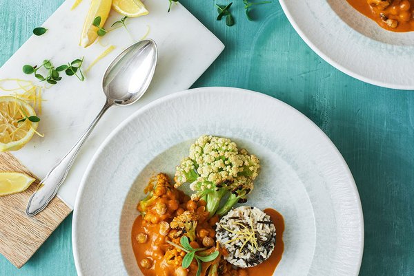 Eiweiß Kichererbsen | Ballaststoffe Kichererbsen | Vitamin C Blumenkohl | Folsäure Kichererbsen, Blumenkohl | Sekundäre Pflanzenstoffe Ingwer, Knoblauch, Orientalische Gewürze